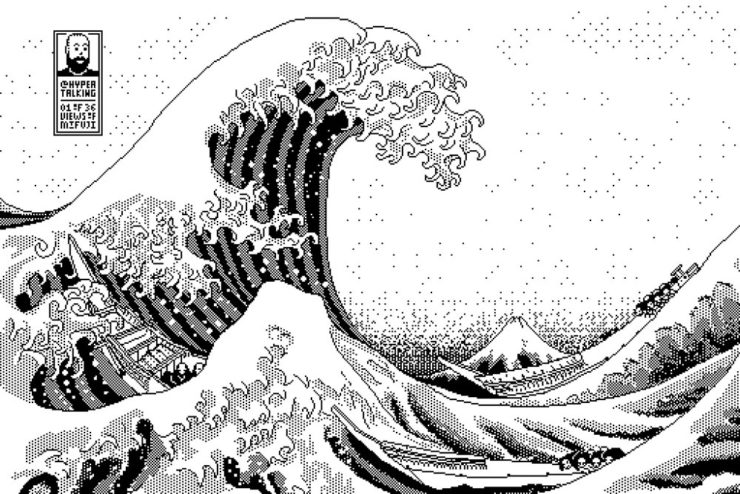 Last but not least this Monday morning, let’s please celebrate Great Wave Off Kanagawa — in glorious 1-bit greatness: