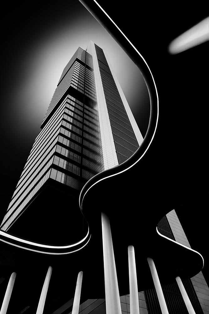 “A lone cyclist moves through sweeping arcs of light and shadow at the City of Arts and Sciences. Reflections echo the architecture’s rhythm, momentarily aligning human motion with structure, symmetry, and space.”
