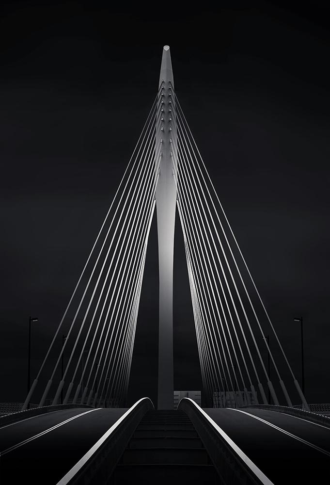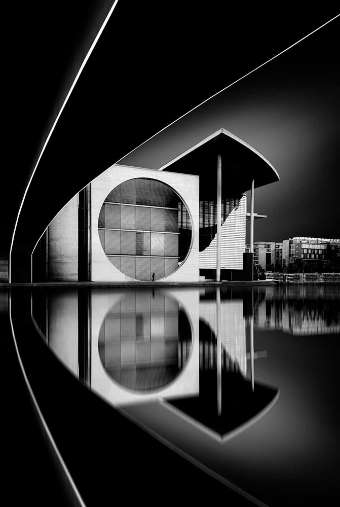 “A lone cyclist moves through sweeping arcs of light and shadow at the City of Arts and Sciences. Reflections echo the architecture’s rhythm, momentarily aligning human motion with structure, symmetry, and space.”