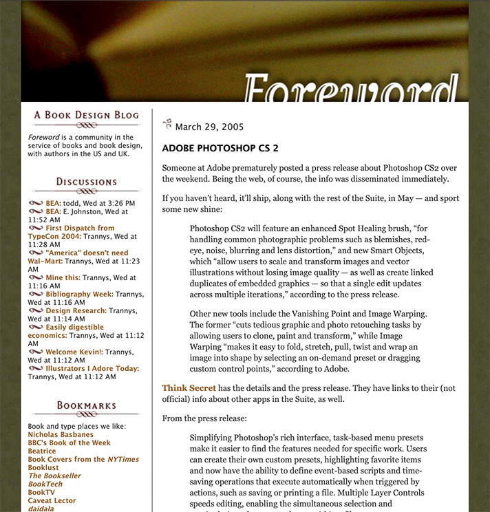 Foreword, a relatively new item called a weblog, or blog, was both a vehicle of discussion and publicity. And it worked — this little blog grew and gained followers, basically riding the early “wave” of blogs.
