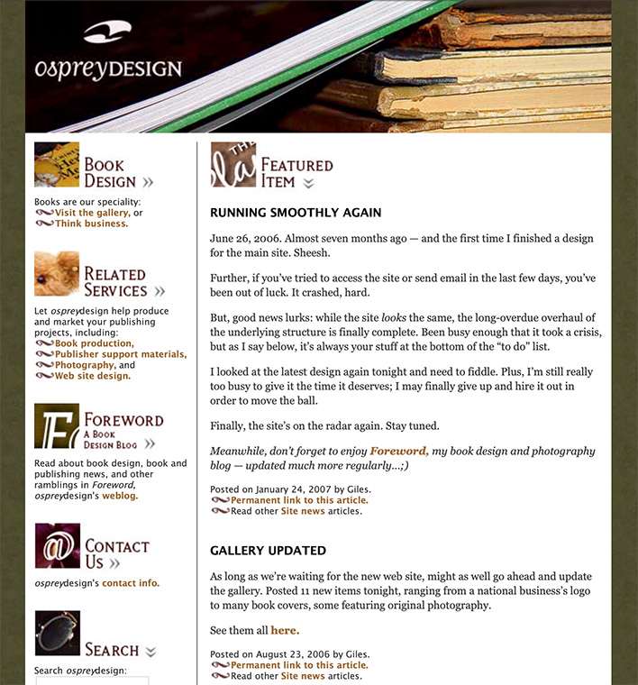 ospreydesign’s home page, as of January, 2007