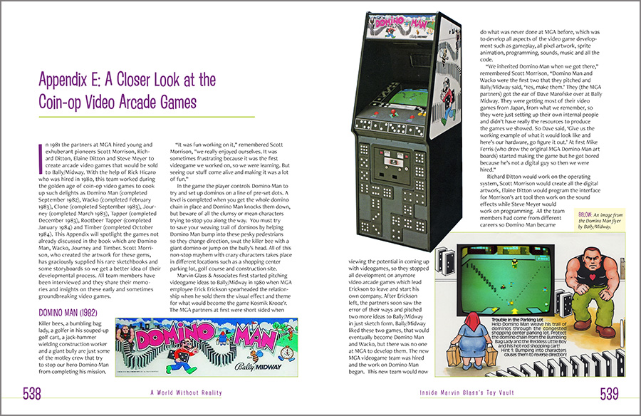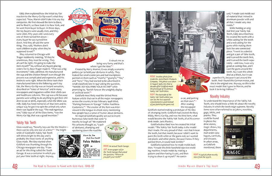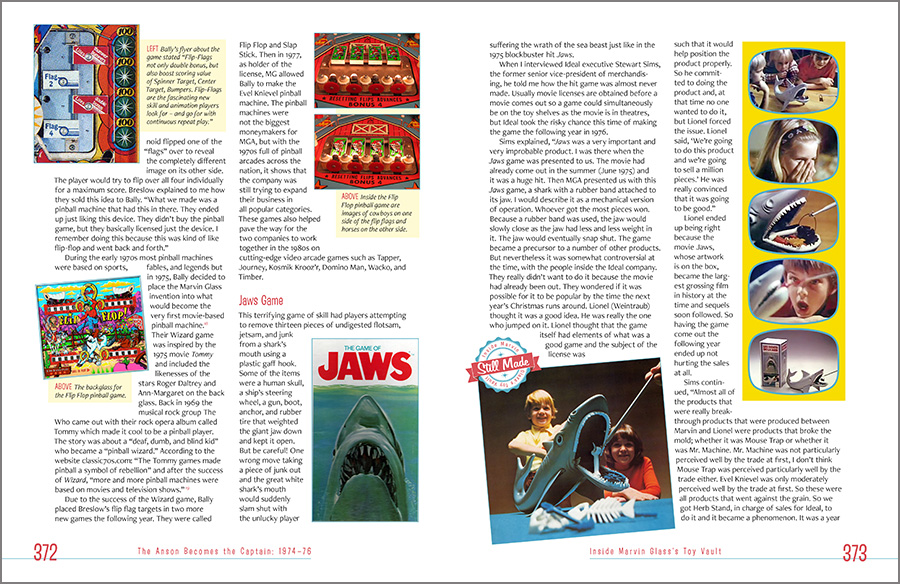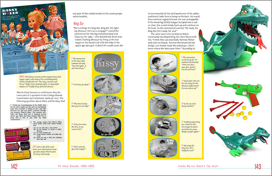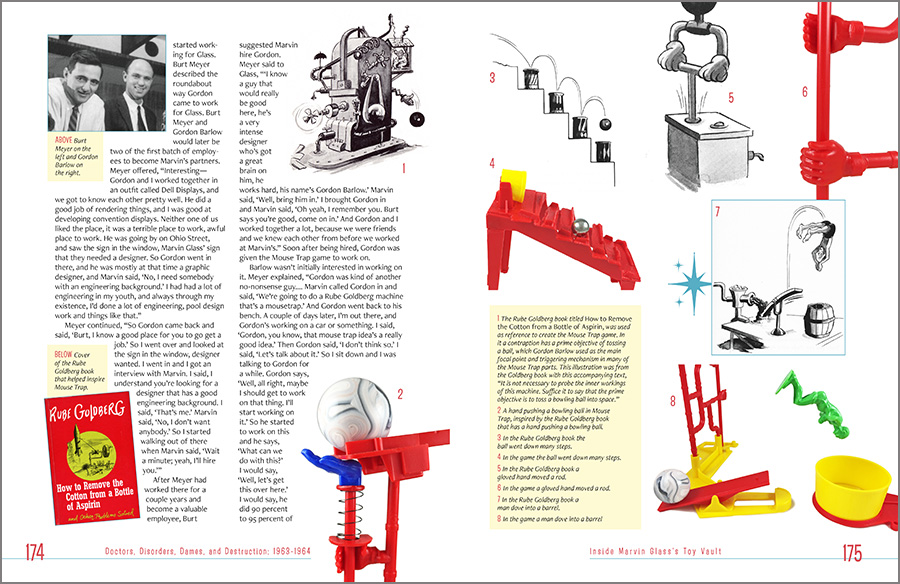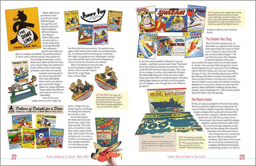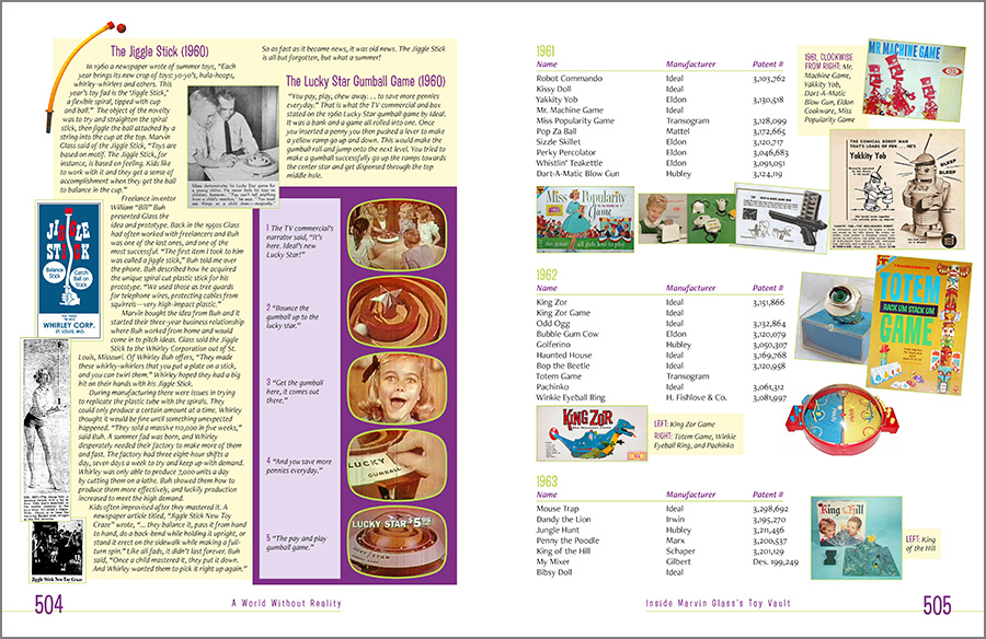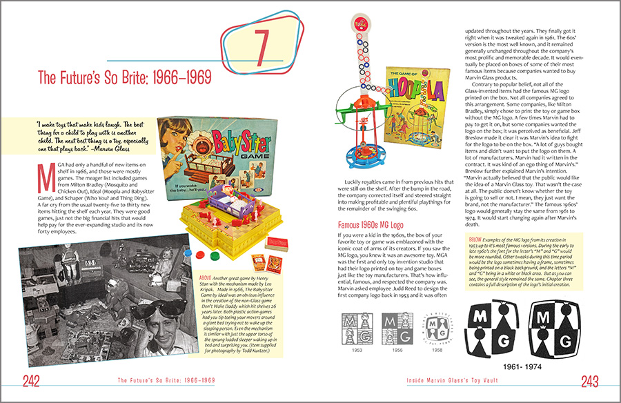 It was designed with a mid-century-yet-contemporary vibe, with custom icons, specific color selections for the various sections, a custom “look” for the televisions advertisements, and full bleed (that is, the ink runs of the edges of the pages), all in support of the author’s story of one of America’s great toy designers and his, shall we say, eclectic life. As he says, “A World Without Reality.”